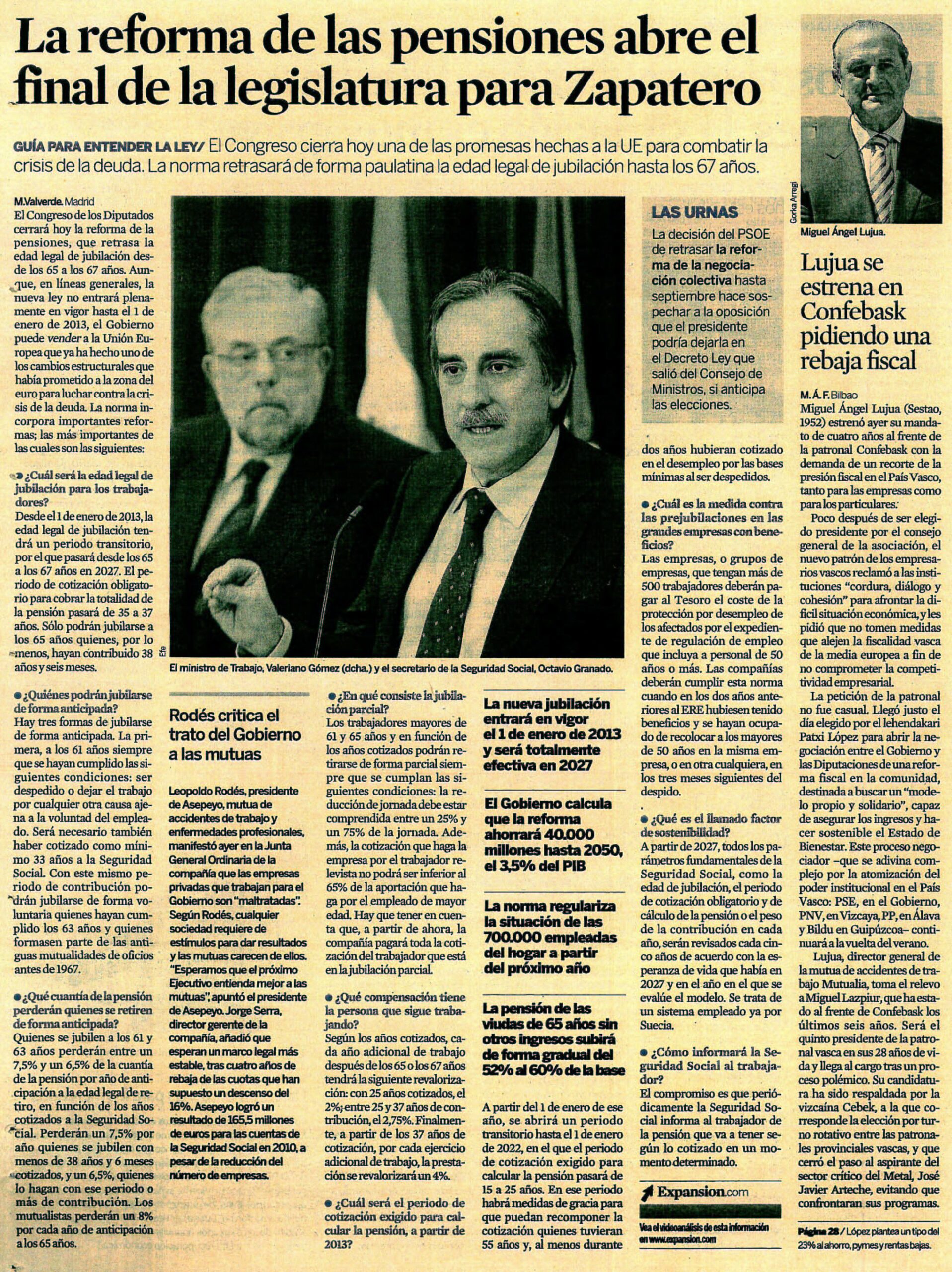 La reforma de las pensiones abre el final de la legislatura para Zapatero.