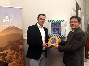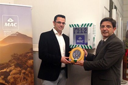La sede central de la Mutua de Accidentes de Canarias (MAC) en la santacrucera calle Robayna cuenta desde ayer con el unico desfibrilador existente en el eje Plaza Weyler-calle Castillo. Esta accion emprendida por MAC se materializo ayer tras la firma del convenio de colaboracion entre la mutua canaria y Atlantic, S.L.U., un acuerdo que persigue favorecer la cardioproteccion y que fue suscrito por el director-gerente de MAC, Javier Gonzalez Ortiz, y el gerente de Atlantic Emergency, S.L.U., Kevin Garcia Pulido.
