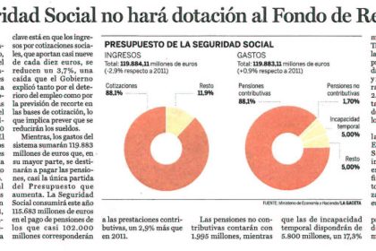 • La Seguridad Social no hara dotacion al Fondo de Reserva.
