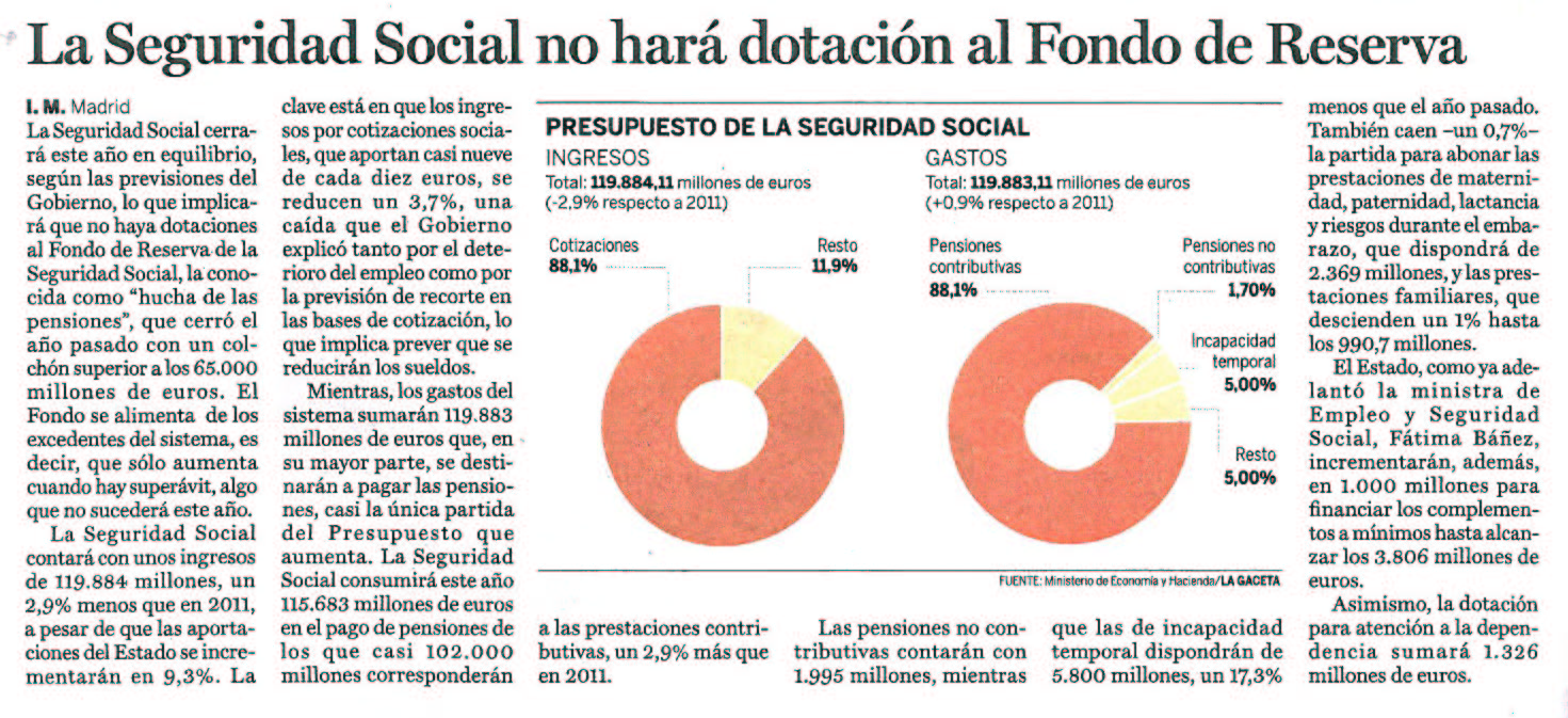 La Seguridad Social no hara dotacion al Fondo de Reserva.