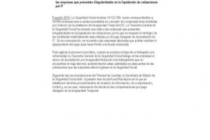 – La Tesoreria General de la Seguridad Social ha enviado una comunicacion a las empresas que presentan irregularidades en la liquidacion de cotizaciones por IT