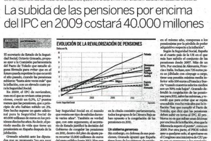 La subida de las pensiones por encima del IPC en 2009 costara 40.000 millones.
