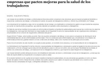 Las mutuas de accidentes de trabajo y enfermedad profesional podrán compensar a las empresas que promuevan programas tendentes a mejorar las condiciones de trabajo o a flexibilizar el cambio de puesto de trabajadores enfermos, informó hoy el Ministerio de Trabajo.