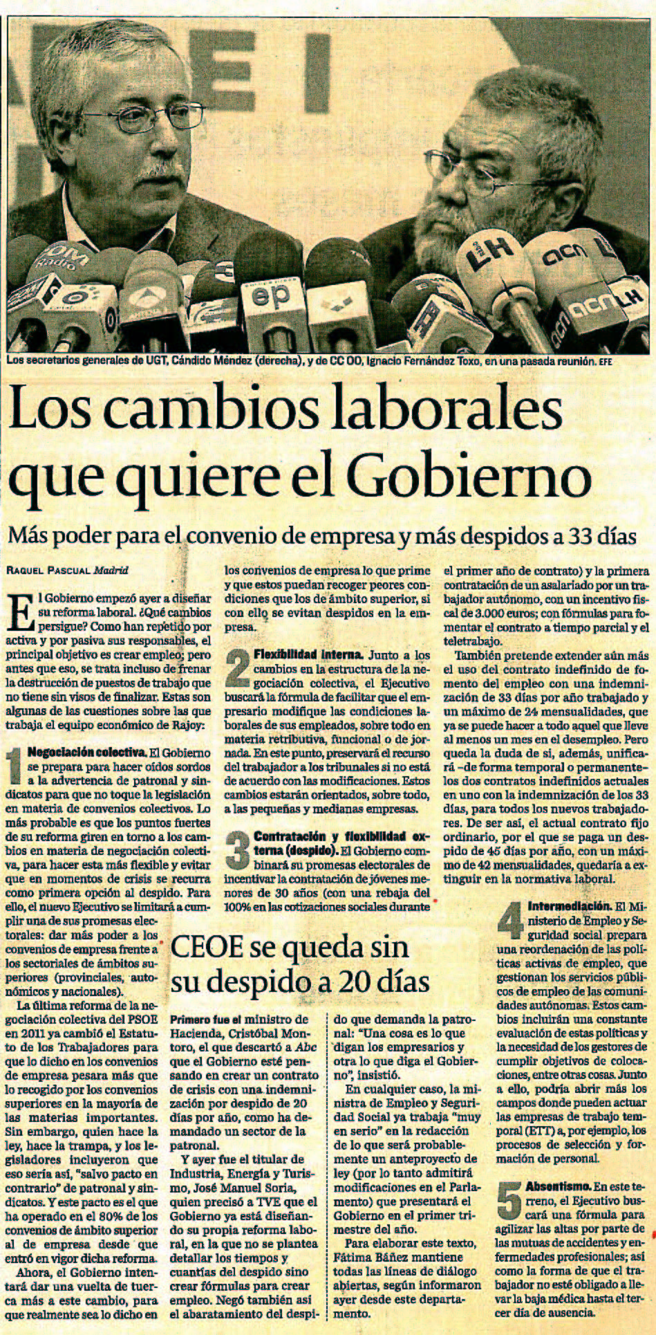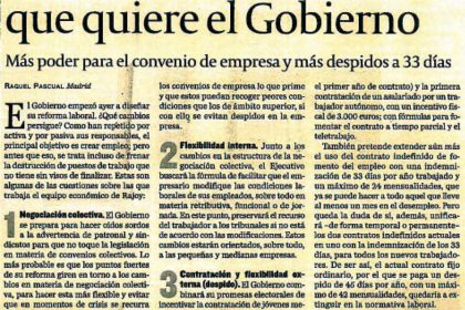 Mas poder para el convenio de empresa y mas despidos a 33 dias.