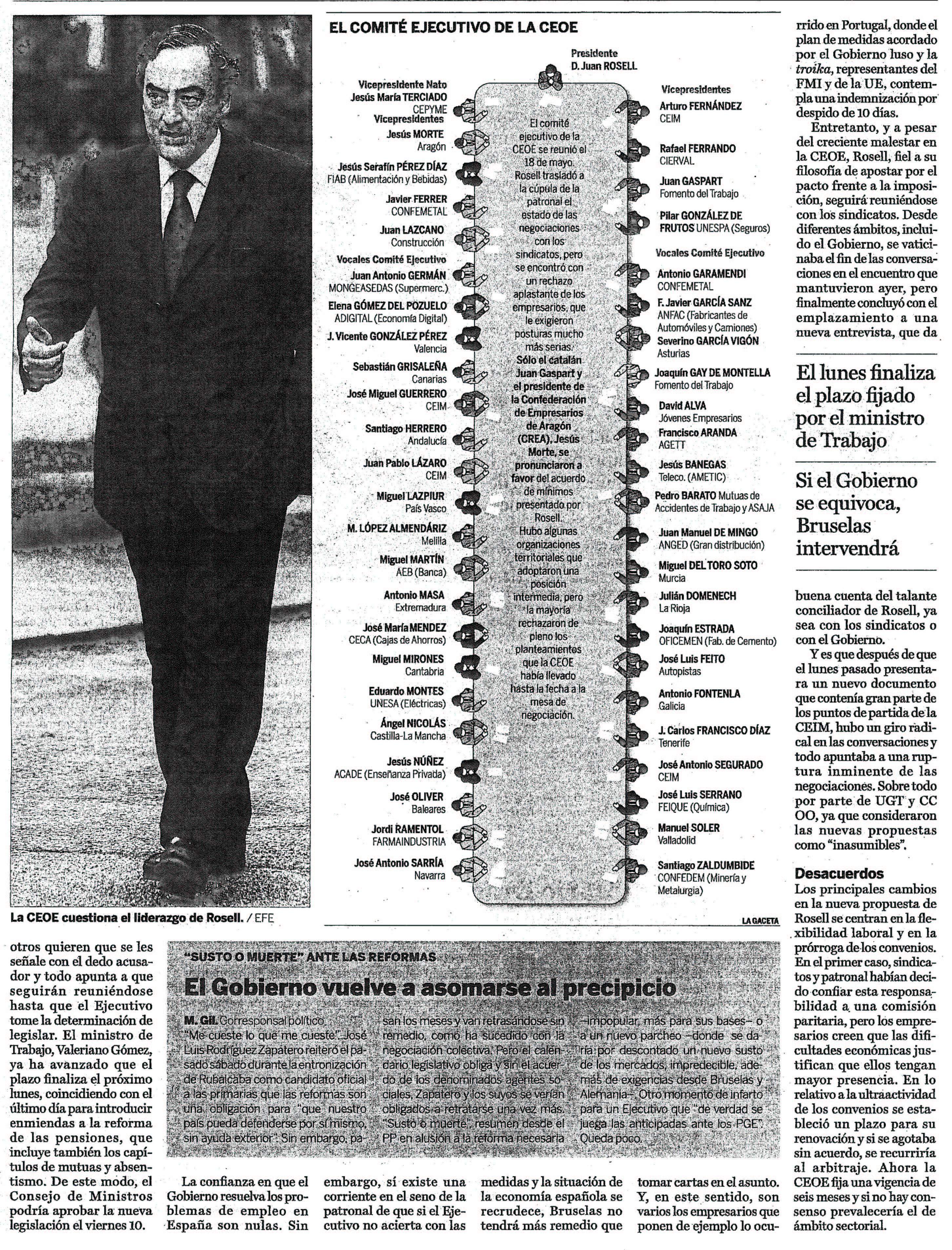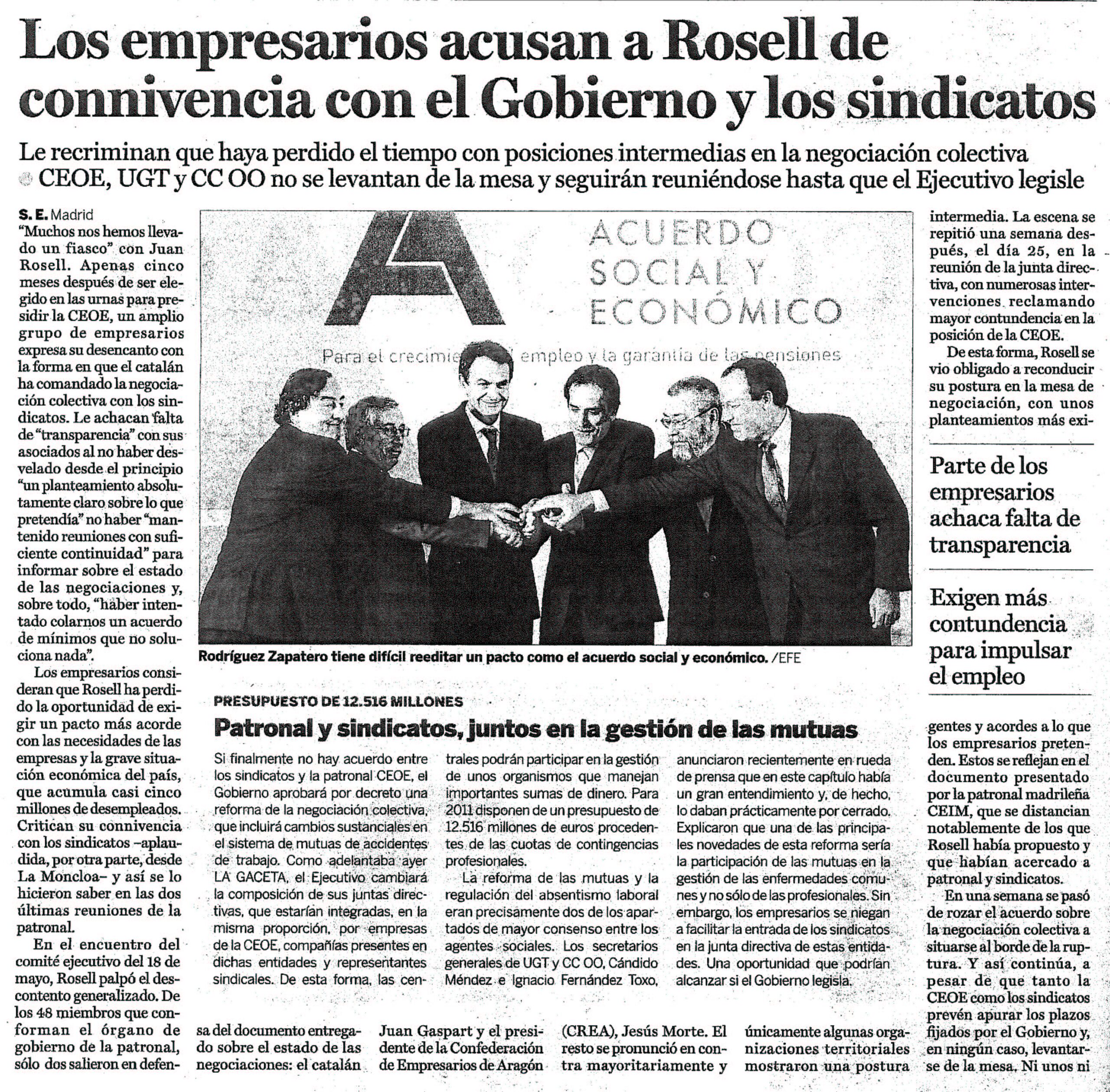 Los empresarios acusan a Rosell de connivencia con el Gobierno y los sindicatos.