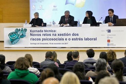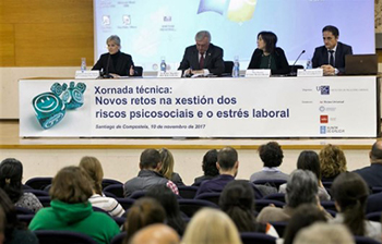 El ISSGA colaboró en este evento con exposiciones sobre la promoción de la salud y actuaciones del Instituto en materia de riesgos psicosociales impartidas por Adela Quinzá-Torroja, directora del ISSGA; Nieves Lorenzo Espeso, jefa de Equipo de Medicina del Trabajo del Centro ISSGA de A Coruña; y María Jesús Copa Arias, jefa de Sección de Ergonomía y Psicosociología Aplicada.Antonio León García-Izquierdo, director de la Cátedra de Asturias de Riesgos Laborales de la Universidad de Oviedo, realizó un análisis de los métodos de detección y evaluación de los riesgos psicosociales, apuntando reflexiones acerca de las dificultades, ventajas y limitaciones del uso de cuestionarios y sobre el alcance de las evaluaciones de riesgo psicosocial.