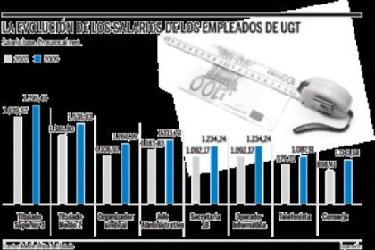 Los trabajadores de UGT no verán disminuido su poder adquisitivo a pesar de que sus sueldos también dependen, en gran medida, de las subvenciones de las Administraciones. Los sindicatos se financian básicamente con las aportaciones del Estado central y de las CCAA, y con las cuotas de sus afiliados.