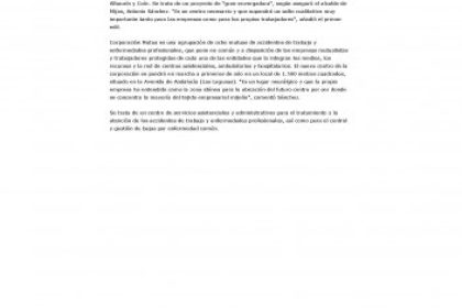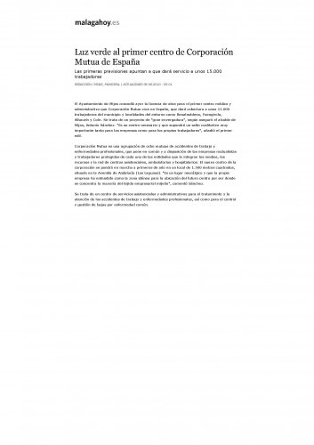 Corporación Mutua es una agrupación de ocho mutuas de accidentes de trabajo y enfermedades profesionales, que pone en común y a disposición de las empresas mutualistas y trabajadores protegidos de cada una de las entidades que la integran los medios, los recursos y la red de centros asistenciales, ambulatorios y hospitalarios. El nuevo centro de la corporación se pondrá en marcha a primeros de año en un local de 1.500 metros cuadrados, situado en la Avenida de Andalucía (Las Lagunas). "Es un lugar neurálgico y que la propia empresa ha entendido como la zona idónea para la ubicación del futuro centro por ser donde se concentra la mayoría del tejido empresarial mijeño", comentó Sánchez.