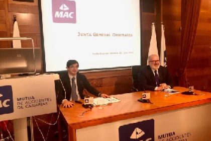 La Mutua de Accidentes de Canarias (MAC) aumentó en 2019 sus ingresos por cotizaciones un 13,95% con respecto a 2018 (98 millones de euros en 2019 frente a los 86 del ejercicio anterior), superando el crecimiento del sector. El presidente de esta entidad colaboradora con la Seguridad Social, Pedro Alfonso, junto con el director-gerente, Javier González Ortiz, sometieron el 24 de julio el balance del ejercicio 2019 a la Junta General, que fue aprobado por unanimidad.