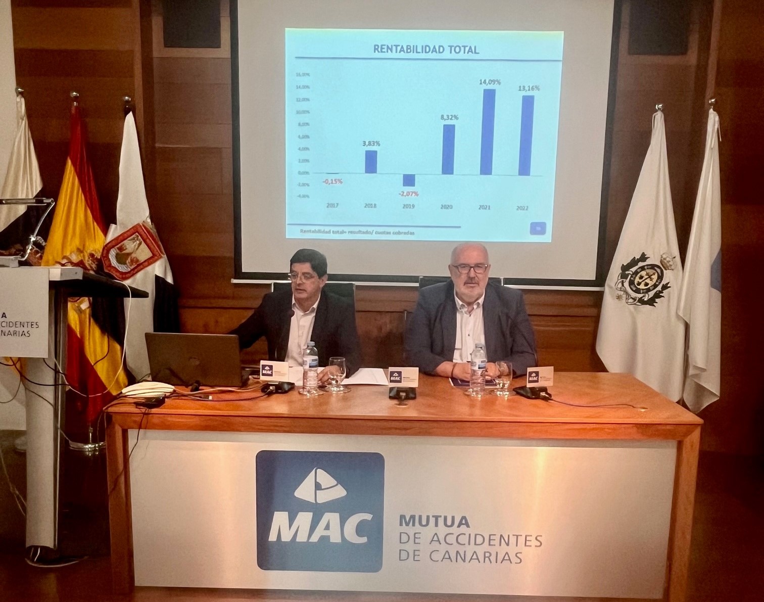 ).- La Mutua de Accidentes de Canarias (MAC) aumentó en 2022 un 19% las prestaciones sociales a sus trabajadores protegidos (8 millones más en 2022 que en 2021). Asimismo, los ingresos de la Mutua crecieron un 5% con respecto a 2021, superando el incremento medio del sector. De igual forma, los ingresos totales de MAC en el ejercicio correspondiente a 2022 ascendieron a 162,2 millones de euros. El presidente de esta entidad colaboradora con la Seguridad Social, Pedro Alfonso, junto con el director-gerente, Javier González Ortiz, sometieron hoy, 14 de julio, el balance del ejercicio 2022 a la Junta General, que fue aprobado por unanimidad.