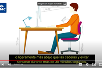 Así, en el vídeo se hace hincapié en los trastornos muscoesqueléticos (recomendable un correcto diseño ergonómico del puesto de trabajo, teniendo en cuenta la mesa, la silla, el teclado, un atril y un reposapiés), la fatiga visual (adecuada iluminación, evitar reflejos y deslumbramientos, la calidad de la pantalla del ordenador, o impedir una incorrecta ubicación del equipo informático y accesorios), los riesgos psicosociales (flexibilidad horaria, establecer un descanso donde primen pausas cortas y frecuentes frente a las largas y espaciadas, prefijar una serie de reuniones entre el teletrabajador y los componentes de la empresa para evitar el aislamiento producido por el mantenimiento de contacto casi exclusivamente telemático o telefónico, medidas para la separación del ámbito familiar del laboral, etcétera) y los asociados a la transformación de una parte de la vivienda en lugar de trabajo (habilitación de un espacio para ubicar correctamente los equipos y materiales, manteniendo una correcta temperatura, así como ventilando la habitación donde se realice la actividad).