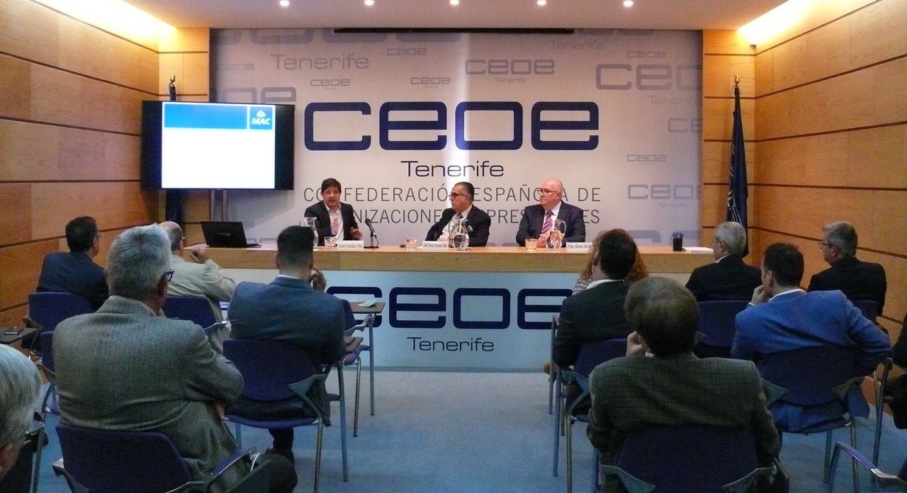 La patronal tinerfeña, que preside José Carlos Francisco, pudo conocer que MAC, en lo que a contingencias profesionales se refiere, experimentó el pasado año un incremento del 200% y logró aumentar la reserva de estabilidad por encima del mínimo legalmente establecido (30,1%), "en un momento complejo para el sector, todavía a expensas de un marco legal definitivo", como recordó González Ortiz.