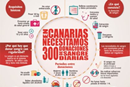Canarias esta a la cola de Espana en donacion de sangre. El Instituto Canario de Hemodonacion y Hemoterapia calcula que son necesarias unas 300 donaciones diarias para poder hacer frente a las necesidades de los hospitales del Archipielago. Canarias esta en las ultimas posiciones en cuanto a donaciones de sangre de todo el pais. Esta situacion trata de revertirse a traves de campanas de concienciacion.