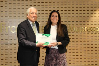 Paloma Lastra, directora QHSE y Sostenibilidad de la compañía, recogió la distinción de manos de Carlos Espinosa de los Monteros, presidentede Fraternidad-Muprespa, en un acto de entrega que tuvo lugar en el Hospital Fraternidad-Muprespa Habana el 23 de abril.