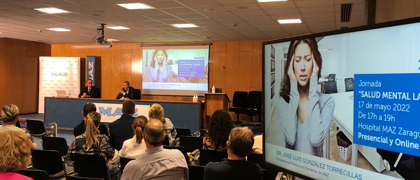 Zaragoza, 18 de mayo de 2022.- Ante el aumento de las patologías en las que existe un trastorno mental, ayer, miércoles 17 de mayo, mutua MAZ organizó una Jornada presencial y online sobre Salud mental laboral. La sesión, dirigida por el Psiquiatra de Prestaciones Sanitarias de la mutua, el Dr. José Luis González Torrecillas trató diversos aspectos de la relación de la salud mental y el entorno laboral.
