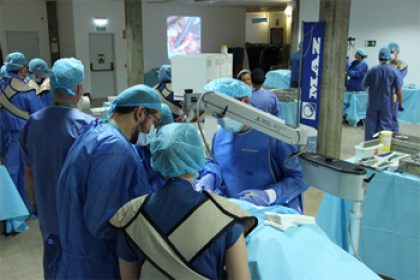 MAZ, mutua colaboradora con la seguridad social n11, organizo en su hospital de Zaragoza, los dias 5 y 6 de febrero, el I Curso de Microcirugia Espinal. Microcirugia Cervical. Con contenidos teorico-practicos, reunio a profesionales de la neurocirugia de toda Espana. Los asistentes dieron una importancia extraordinaria a las sesiones practicas donde, instruidos por los neurocirujanos de la mutua, se instalaron 4 estaciones quirurgicas para aplicar las tecnicas vistas en las ponencias.