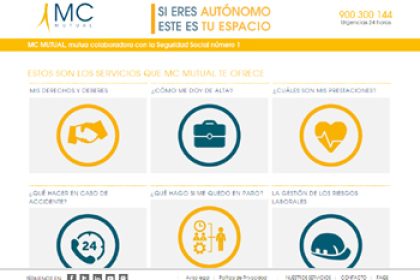 MC Mutual, Mutua Colaboradora con la Seguridad Social, lanza hoy un nuevo portal web, diseñado exclusivamente para el trabajador autónomo, con el objetivo de facilitar las gestiones que este colectivo debe llevar a cabo con la mutua y con la Seguridad Social y transmitirles información de su interés en las materias objeto de colaboración.La puesta en marcha de este nuevo entorno, permite a la mutua mejorar el servicio que presta a los 203.000 trabajadores autónomos que tiene adheridos, ofreciéndoles una información y herramientas más enfocadas a sus necesidades.
