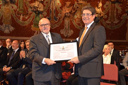 En un evento, celebrado en el Palau de la Musica Catalana, el director general de MC MUTUAL, Eduardo Vidal, recogio el premio Ignasi Arago i Mitjans a la mejor memoria de una institucion sanitaria y social, de manos del presidente del patronato de la Fundacion Avedis Donabedian, el doctor Alvar Net.