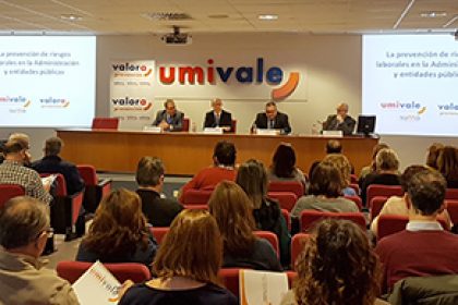 Umivale analiza junto a Valora Prevencion la responsabilidad de las administraciones publicas en materia de riesgos laborales. La conferencia ha sido impartida por Ignacio Rosat, director RRHH del Palau de la Musica de Valencia, y Guillermo Gil Ballester, director tecnico de Valora Prevencion.