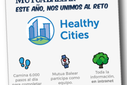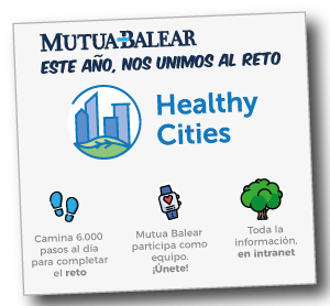 Mutua Balear se ha sumado a la IX edición de ‘Healthy Cities’, un programa que reta a la plantilla de las empresas adheridas a caminar 6.000 pasos al día y dejar el coche en casa una vez a la semana durante los meses de mayo y junio para mejorar su estado de salud y generar un impacto positivo en el medioambiente.