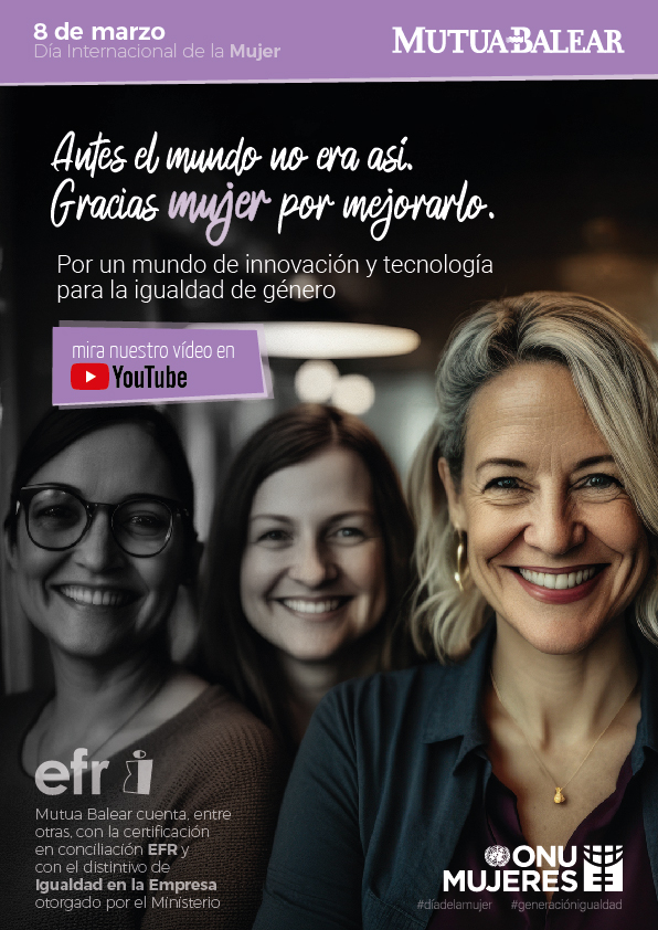 La iniciativa, que tiene como objetivo poner en valor el esfuerzo que realizan las mujeres para construir un futuro más igualitario. Entre las iniciativas se incluye la publicación de un nuevo vídeo en Mutua Balear TV, la cuenta oficial de Youtube de la entidad, además de la difusión de pósteres conmemorativos y otros materiales divulgados a través de sus redes sociales.