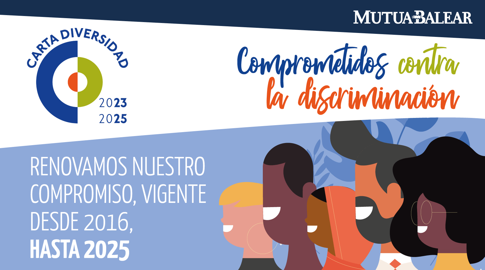 Mutua Balear ha renovado su vinculación con la Carta de la Diversidad hasta el año 2025. Esta iniciativa de la Fundación Diversidad establece un código de compromiso voluntario que se enmarca dentro de las directivas antidiscriminación impulsadas por la Comisión Europea en el año 2000 y que suscriben, de forma voluntaria, tanto empresas como instituciones para apoyar, promover y extender la diversidad. El objetivo no es otro que potenciar la calidad de vida y de trabajo de las personas en su entorno laboral.