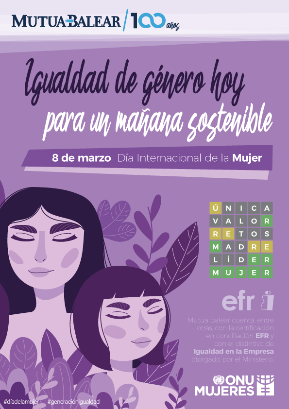 La iniciativa incluye la publicación de un nuevo vídeo en Mutua Balear TV y la difusión de pósteres conmemorativos y otros materiales a través de las redes sociales y de la intranet de la entidad. Todo ello para poner en valor el enorme esfuerzo que las mujeres de todo el mundo realizan para forjar un futuro más igualitario.