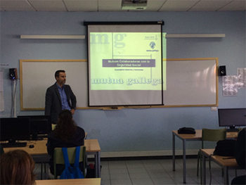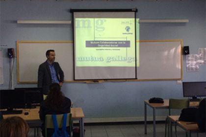 Isidro Lopez, en representacion de Mutua Gallega, participo en una jornada informativa dirigida a los alumnos del Ciclo Superior de Finanzas del I.E.S. Mencey Bencomo, de Tenerife. Una charla a la que fue invitado por la empresa mutualista APANATE.