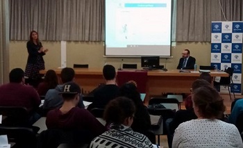 El director de Servicios al Mutualista centró su intervención en algunos aspectos sobre la prevención de riesgos laborales. Después de un repaso sobre la legislación relativa a este campo, explicó a los estudiantes que en materia de prevención las mutuas tienen cuatro programas de actuación: asesoramiento técnico a pymes, asesoramiento a empresas o actividades concurrentes, difusión del servicio de la Seguridad Social “Prevención10.es” y control de gasto en prestaciones económicas de la Seguridad Social por contingencias profesionales.