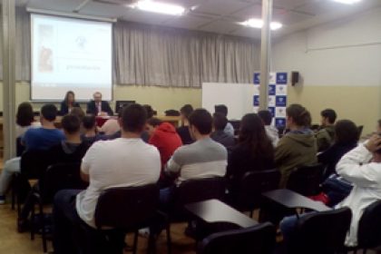 Unos sesenta alumnos del ciclo superior de Prevencion de Riesgos Profesionales del instituto IES Universidade Laboral de Culleredo, asistieron a una charla sobre el trabajo que desempena una mutua y su relacion con la Seguridad Social, impartida por Olaya Lopez, Directora de Organizacion y Control de Mutua Gallega y Cristobal Pinon, Director de Prestaciones de la misma entidad.