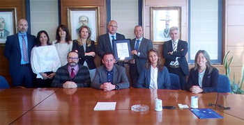 Martin Pita, director de AENOR Galicia (Asociacion Espanola de Normalizacion y Certificacion) hizo entrega hoy por la manana en la sede de Mutua Gallega de Monte Alfeiran de este certificado al Director Gerente de Mutua Gallega, Javier Florez, que estuvo acompanado por los miembros del Comite de Direccion de Mutua Gallega.