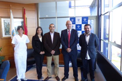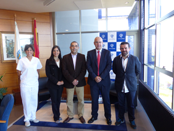 Carlos Diaz Cabre, Decano de la Facultad de Ciencias de la Salud de dicha universidad acompanado de Carolina Pena Silva, Coordinadora Academica de la Escuela de Kinesiologia de la misma facultad y Gustavo Paseiro Ares, Vicedecano de la Facultad de Fisioterapia de la Universidad de A Coruna fueron recibidos por nuestro Director Gerente Javier Florez Arias y la Coordinadora de Fisioterapia del Centro de Rehabilitacion de Mutua Gallega en A Coruna Elena Rodriguez Garcia.