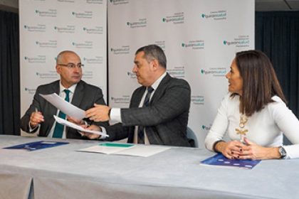 Javier Flórez Arias, Director Gerente, y Laura Roca San José, Directora Médica de Contingencias Profesionales de Mutua Gallega, se desplazaron hasta el Hospital Quirónsalud de Pontevedra para la firma de este convenio con el que se garantiza la prestación de servicios de calidad a los mutualistas de esta región.