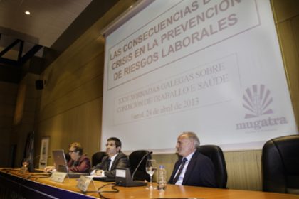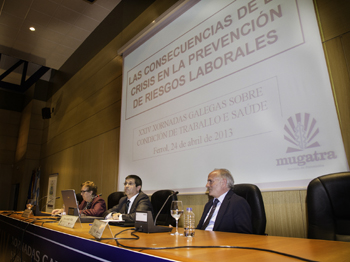MUGATRA participo con una ponencia de su Director Tecnico, Jose Acuna Vilas sobre Las consecuencias de la crisis en la prevencion de riesgos laborales. Ademas se trataron temas como las contingencias profesionales y la prevencion en el trabajo autonomo, empleo y proteccion por desempleo, el plan de actividades del ISSGA para el 2013, sostenibilidad y crisis: riesgo de exclusion social, etc. Se trata de que los medios legales, tecnicos, medicos y humanos se adapten a las nuevas exigencias de la sociedad actual.