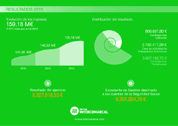 Mutua Intercomarcal ha celebrado esta tarde su Junta General Ordinaria de Mutualistas, en la que se han presentado los resultados de gestión correspondientes al ejercicio 2015. Alexandre Blasi, presidente de la entidad, Jordi Serres, secretario de la Junta y Enric González, director general, han sido los encargados de presentar a los mutualistas asistentes los resultados de un ejercicio de crecimiento generalizado de la entidad en todos los ámbitos, que se ha visto favorecido por la importante labor desarrollada en el control del gasto y una gestión orientada a la máxima eficacia.De este modo, durante el ejercicio 2015 Mutua Intercomarcal ha generado unos ingresos de 159,18 millones de euros, una cifra que supone un crecimiento del 7,17% respecto a los ingresos del año anterior. El resultado final del ejercicio ha sido de 8,93 millones de euros, distribuido en 5,87 millones correspondientes a contingencias profesionales, 2,19 millones correspondientes al cese de la actividad de trabajadores autónomos, y 0,86 millones de euros correspondientes a contingencias comunes.Tras constituir las reservas legales, la entidad ha generado un excedente de gestión destinado a las cuentas de la Seguridad Social de 6,3 millones de euros, que se ingresarán en las cuentas correspondientes tal como establece el Reglamento sobre la colaboración de las Mutuas de Accidente de Trabajo y Enfermedades Profesionales.Durante la Junta se han presentado también los datos correspondientes a empresas afiliadas y trabajadores protegidos, que han experimentado un importante crecimiento. La afiliación de empresas se ha visto incrementada un 4,43% hasta las 41.543, y del mismo modo los trabajadores de empresa protegidos han experimentado un aumento del 6,49%, situándose en 218.985. Por lo que respecta a los trabajadores autónomos protegidos, se ha registrado un crecimiento del 7,81%, hasta alcanzar los 55.877.Alexandre Blasi, presidente de Mutua Intercomarcal, ha querido destacar en este sentido la magnífica valoración de los servicios de la entidad, tanto por parte de mutualistas como de los trabajadores protegidos, y ha puesto en valor que, un año más, el informe de la Dirección General de Ordenación de la Seguridad Social sobre reclamaciones en el sector de las mutuas sitúa a Mutua Intercomarcal como el referente del sector en términos de calidad y orientación al servicio.Por su parte Enric González, director general de la entidad, ha remarcado que, de acuerdo con el anteproyecto de presupuesto de 2017 que se presentará al Ministerio para su aprobación, la Mutua espera alcanzar una recaudación de cuotas de 185,43 millones de euros. Para lograr esta meta, ha señalado que será necesario mantener unos ingresos equilibrados tanto en contingencias profesionales como comunes, mejorar las ratios de prestaciones económicas por incapacidad temporal o lesiones residuales sobre las respectivas cotizaciones sociales, y mantener el máximo nivel de rigor presupuestario en el control de los gastos corrientes.