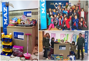 MAZ ha participado a través de diez de sus centros. Así, el Hospital de Zaragoza, Sede Social; Huesca, Barbastro, Fraga, Monzón; Teruel, Andorra, Alcañiz y Calamocha se han sumado a esta cita que ha hecho posible el reparto de juguetes y regalos entre niños y ancianos de toda la Comunidad.
