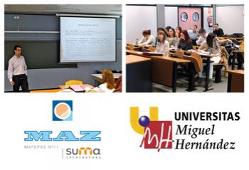La Universidad Miguel Hernandez de Elche, organizo una conferencia con el titulo ‘Mutuas, contingencias profesionales y autonomos’ impartida por Carlos Izquierdo, Gestor de Afiliacion-Recaudacion de Mutua MAZ, y Benjamin Hervas, tecnico en prevencion de misma Mutua de Accidentes.
