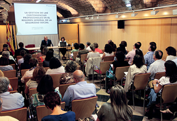 Ademas intervinieron como ponentes D. Angel Royo Lopez, Secretario Provincial de la Direccion Provincial MUFACE Zaragoza, hablando sobre ‘La gestion de las contingencias profesionales en la Mutualidad de Funcionarios Civiles del Estado (MUFACE’) y D. Luis Javier Lozano Marques, Jefe de Servicio de Recaudacion y Cotizacion, Mutualidad General Judicial, con el tema ‘La gestion de las contingencias profesionales en la Mutualidad General Judicial (MUGEJU)’.