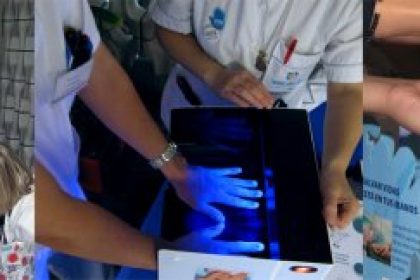 Entre otras actividades, en el Hospital MAZ de Zaragoza se recogieron muestras entre el personal de enfermería, y se comprobó in situ la higiene de las palmas de las manos de diversos voluntarios mediante lámparas infrarrojas.