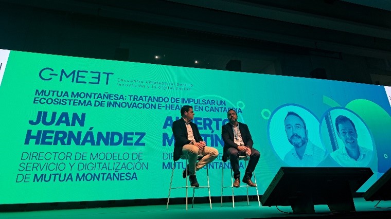 Alberto Martínez Lebeña, Director Gerente y Juan Hernández, Director de Modelo de Servicio y Digitalización de Mutua Montañesa hablaron sobre el ecosistema de innovación abierta como estrategia para impulsar un sistema E-Health en Cantabria y la importancia de la colaboración e intercambio de ideas para lograr este objetivo.