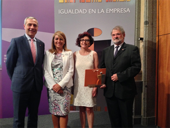 Luis Miguel Garcia Rodriguez, Presidente de Mutua Montanesa, ha recogido este distintivo que reconoce a aquellas entidades que destacan de forma relevante y significativa en la aplicacion de politicas de igualdad de trato y de oportunidades en su plantilla.