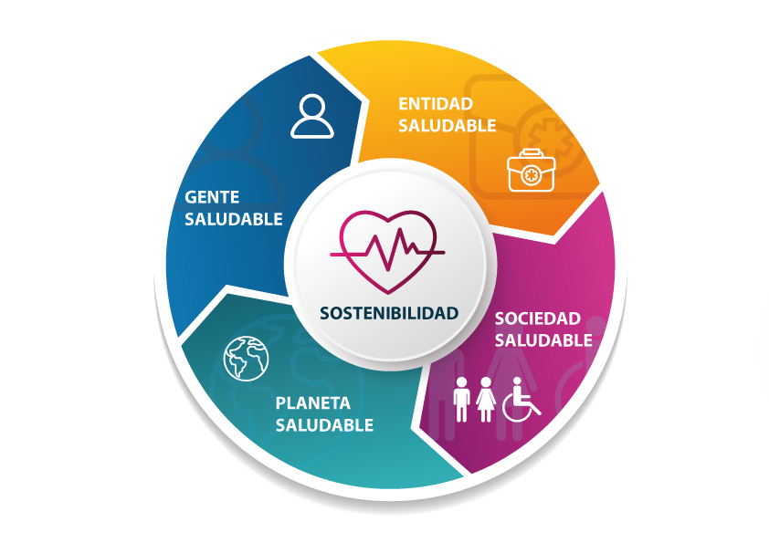 • El plan se desarrolla a partir de cuatro ejes de compromiso, con el foco común de la salud: “Gente Saludable”, “Entidad Saludable”, “Sociedad Saludable” y “Planeta Saludable”.
