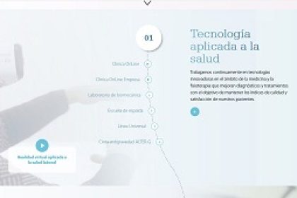 – Avances tecnológicos aplicados a la salud y orientados a la mejora del diagnóstico y tratamiento. Presenta soluciones como Clínica Online, Clínica Online Empresa, Laboratorio de biomecánica, Realidad Virtual…