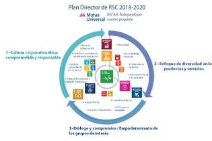 Mutua Universal, mutua colaboradora con la Seguridad Social, ha finalizado el desarrollo de su Plan Director de RSC 2018-2020: “RSC 4.0: Trabajando por nuestro propósito”. Este plan nace del compromiso de la Entidad de atender a las necesidades de sus grupos de interés y dar respuesta a la realidad social actual, marcada por el avance de las nuevas tecnologías y del paradigma 4.0, así como por los grandes retos relacionados con la salud, el bienestar, el empleo y el cambio climático.