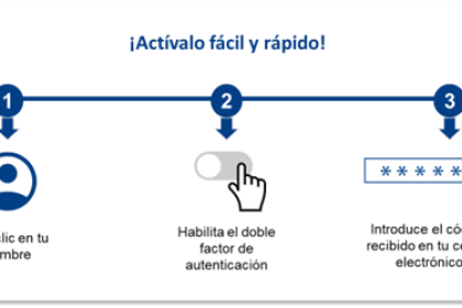 La aplicación del doble factor de autenticación, una muestra más de que la seguridad de la información es una prioridad para la entidad, añade una capa adicional de protección al inicio de sesión tanto en la Zona Privada Empresa como en la Zona Privada Asesoría.