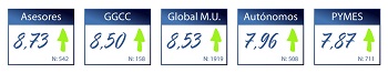 Las conclusiones generales señalan una mejora generalizada de los niveles de servicio por parte de todos los colectivos; especialmente, entre autónomos y asesores: