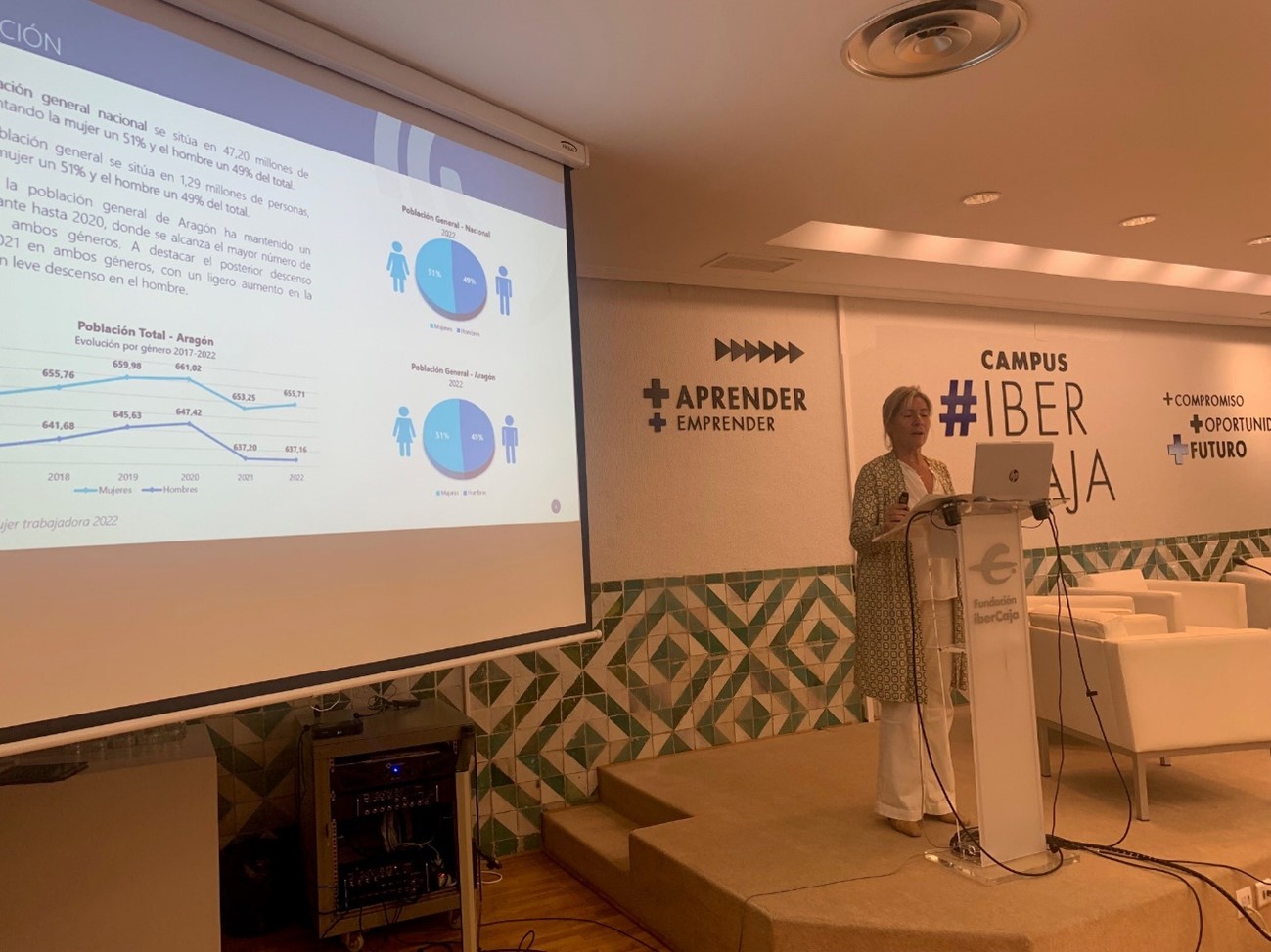 Durante la jornada, Susana Mato, directora de Relaciones Institucionales y Responsabilidad Social Corporativa de Mutua Universal, ha expuesto los datos a nivel nacional y de Aragón de la VI edición del Observatorio de la Mujer Trabajadora correspondientes al año 2022.