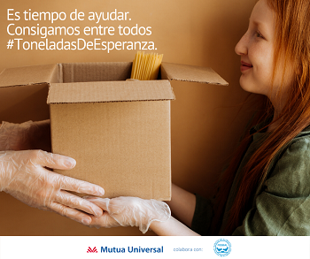 Con el lema #ToneladasdeEsperanza, Mutua Universal ha querido reforzar aún más este año su compromiso social y ha establecido un reto que será convertido en alimentos que la Federación Española de Bancos de Alimentos repartirá a aquellas personas que no cuentan con suficientes recursos para la compra de víveres.
