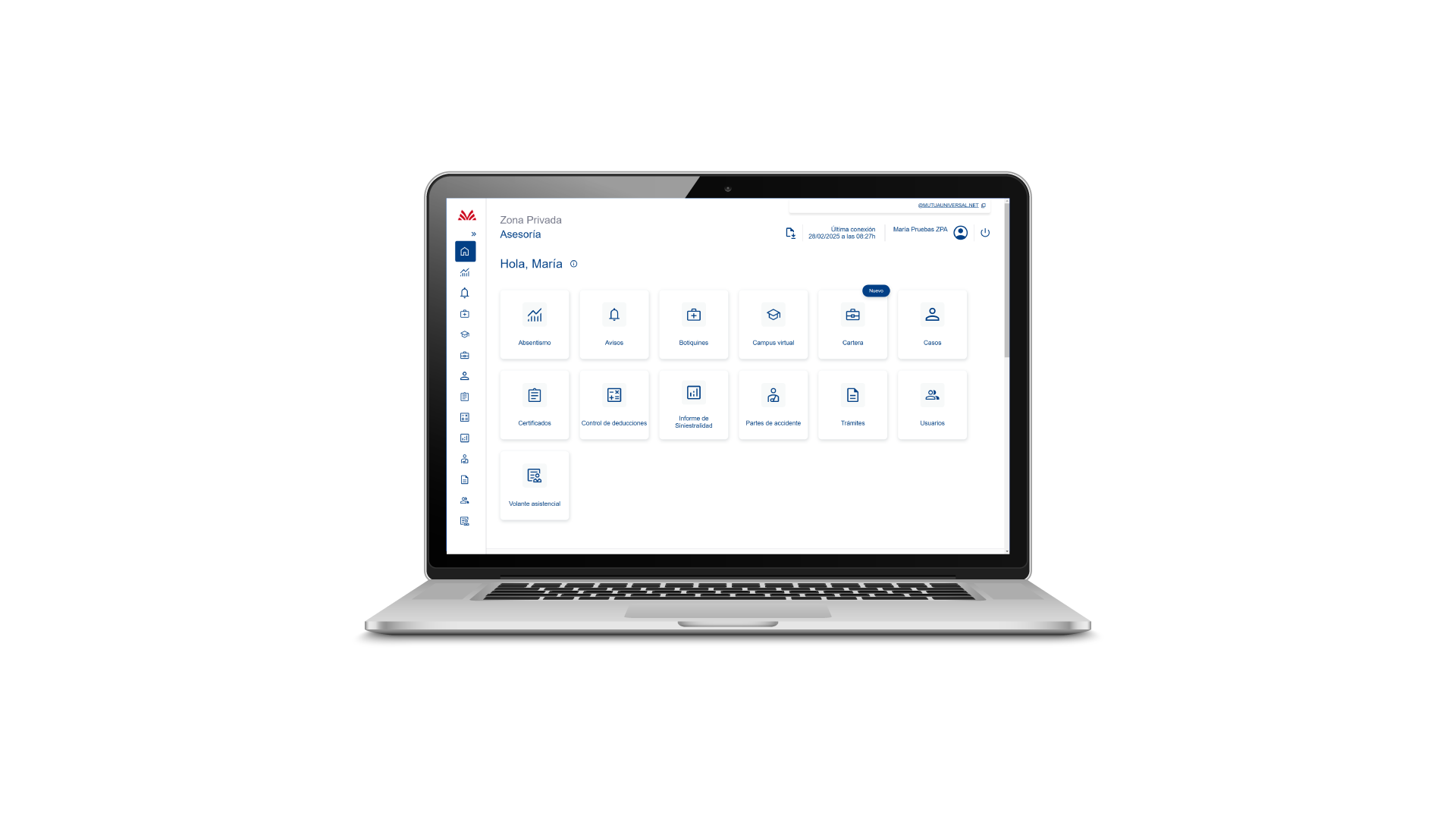 La nueva zona privada, adaptada a las necesidades de las asesorías colaboradoras, supone un paso más en la experiencia de uso facilitando herramientas digitales útiles como la tramitación online de partes de accidente y prestaciones, el envío de volantes de asistencia, la descarga de certificados, el control de deducciones, la solicitud de botiquines, el acceso a toda la cartera de clientes o el seguimiento de los procesos de baja, entre otras funcionalidades.