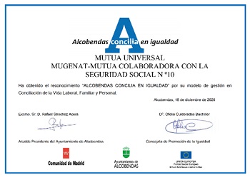 Por otro lado, Mutua Universal ha recibido por octavo año consecutivo la concesión de los distintivos “Alcobendas Concilia en Igualdad” y “Empresas Comprometidas con la Igualdad”, que reconocen el modelo de gestión de la Entidad en conciliación de la vida laboral, familiar y personal, así como sus aportaciones y su trabajo en favor de la igualdad de oportunidades y de la conciliación laboral.